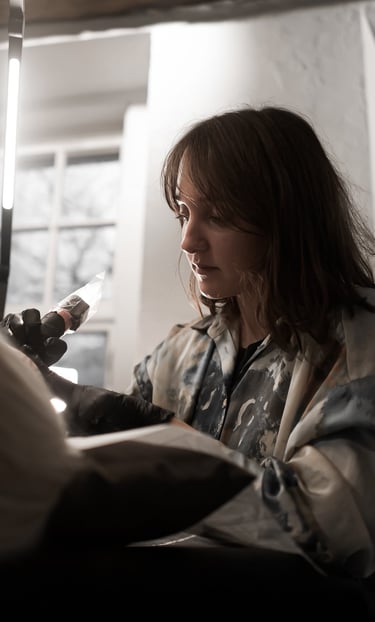 Ich bin eine professionelle und erfahrene Tätowiererin, die sich darauf spezialisiert hat, individuelle und kreative Kunstwerke auf den Körpern meiner Kunden zu kreieren. Ich arbeite mit großer Hingabe und Leidenschaft und freue mich darauf, auch euch ein einzigartiges Tattoo zu gestalten.